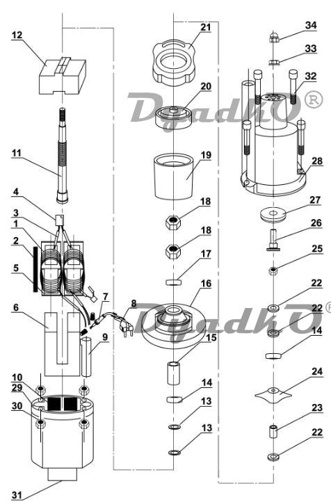 Вал в сборе с магнитом для ВН-10В ODJ, JUN