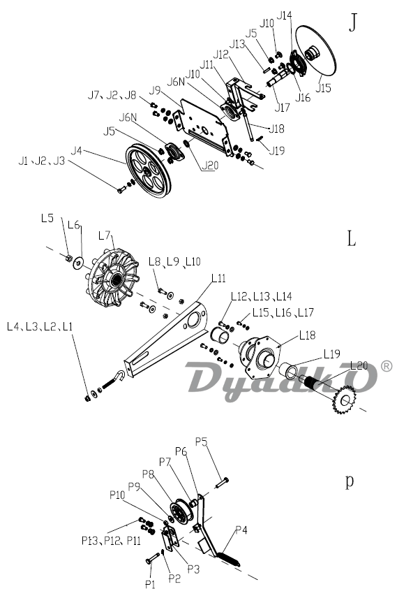 Схема SUNGARDEN TORNADO 2460 TS (15AZ0203) Фрикционный диск, Ведущее колесо гусеницы, Ролик сцепления