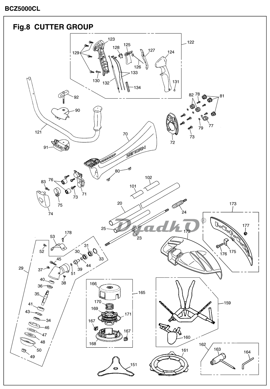 Схема ZENOAH BCZ5000DL, BCZ5000DW, BCZ5000CL (SERIAL NUMBERS: DRIVE UNIT 51000101 and up; ENGINE UNIT 61004647 and up)(November 2008) 03 CUTTER GROUP (BCZ5000CL)