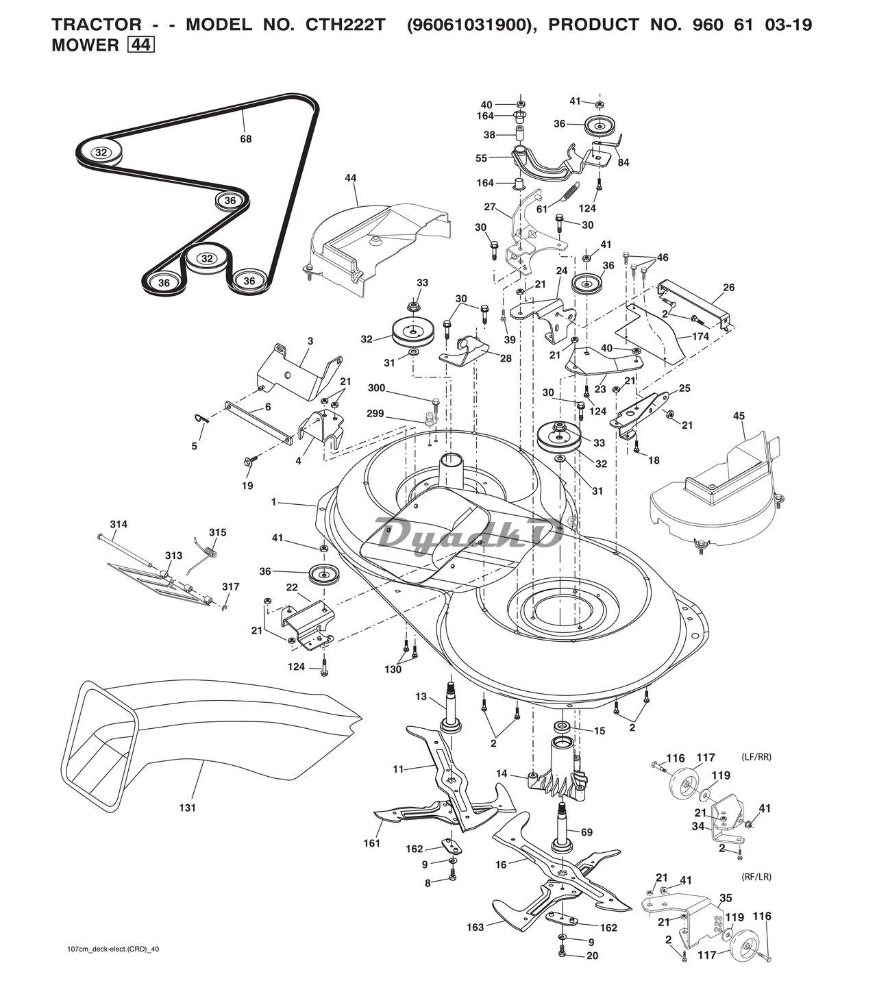Схема HUSQVARNA CTH222T (96061031900) 08 Дека, корпус подшипника вала, вал привода ножей, ремень привода ножей