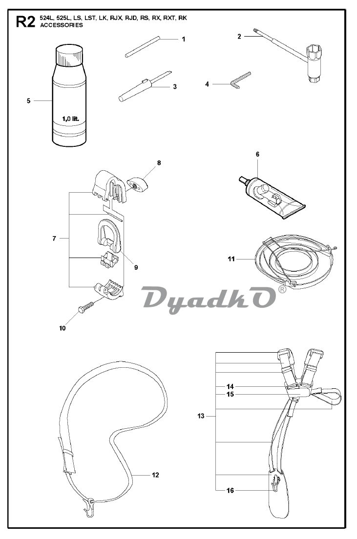 Схема HUSQVARNA 524L, 524LK, 525L, 525LS, 525LK, 525RJX, 525RJD, 525RS, 525RX, 525RXT, 525RK Аксессуары