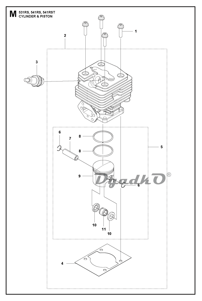 Схема HUSQVARNA 541RS (967660801, 967660802, 967660803, PIM94718151, 967660804) 2018 CYLINDER PISTON
